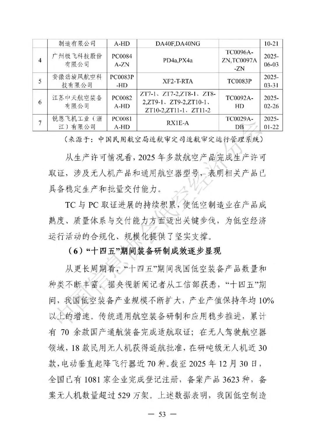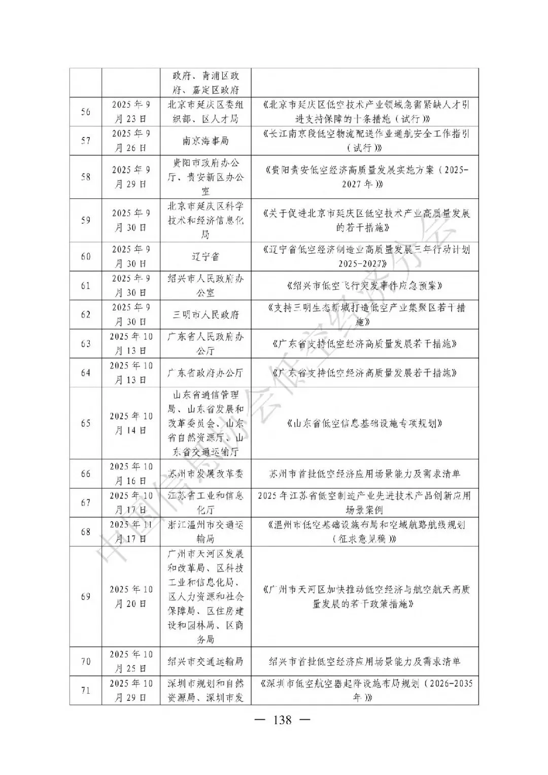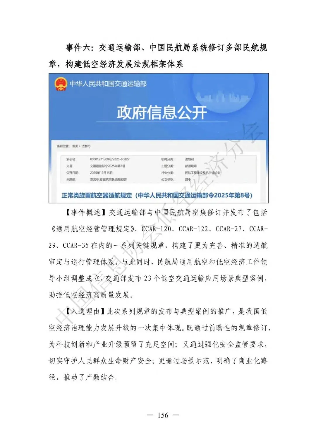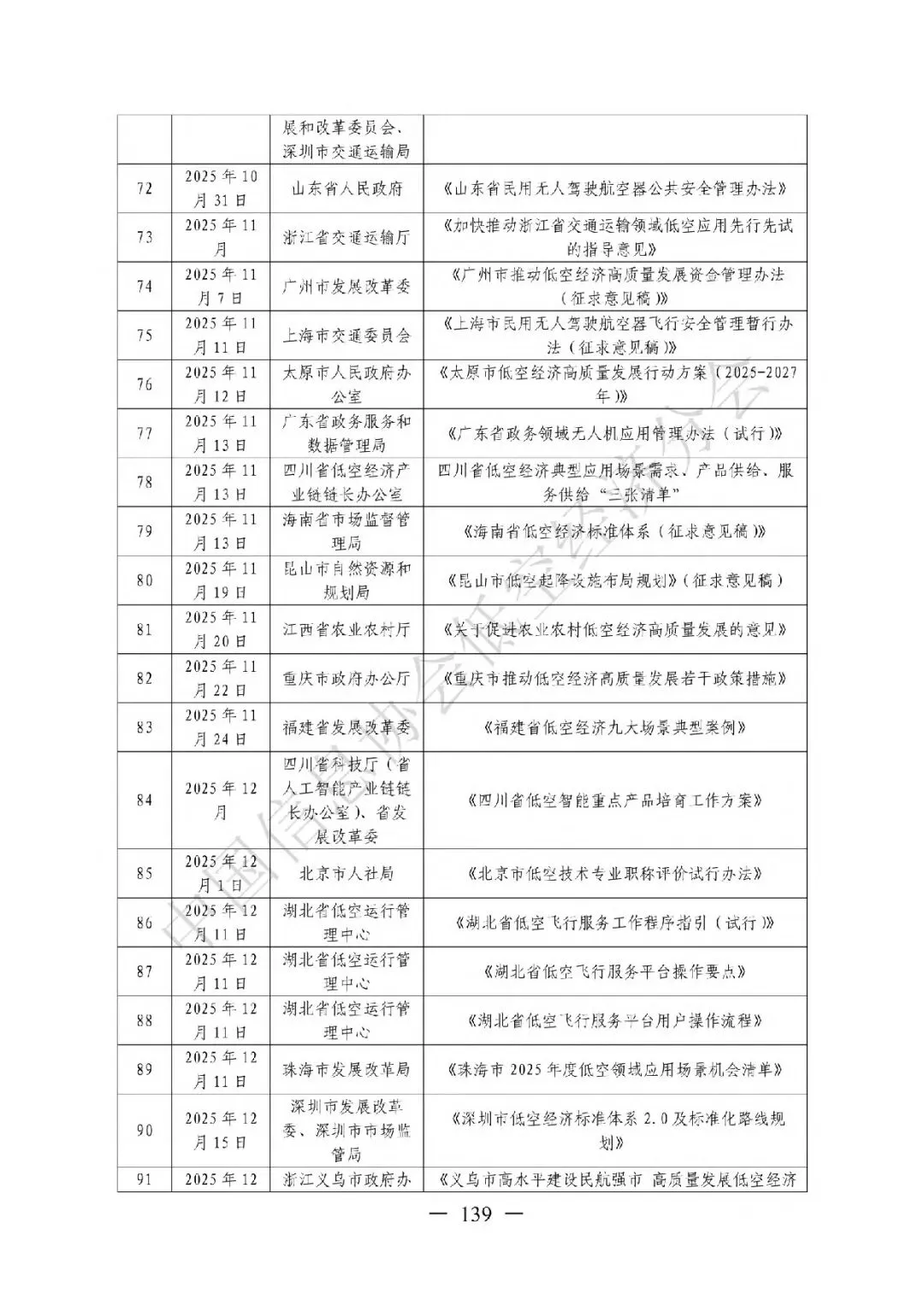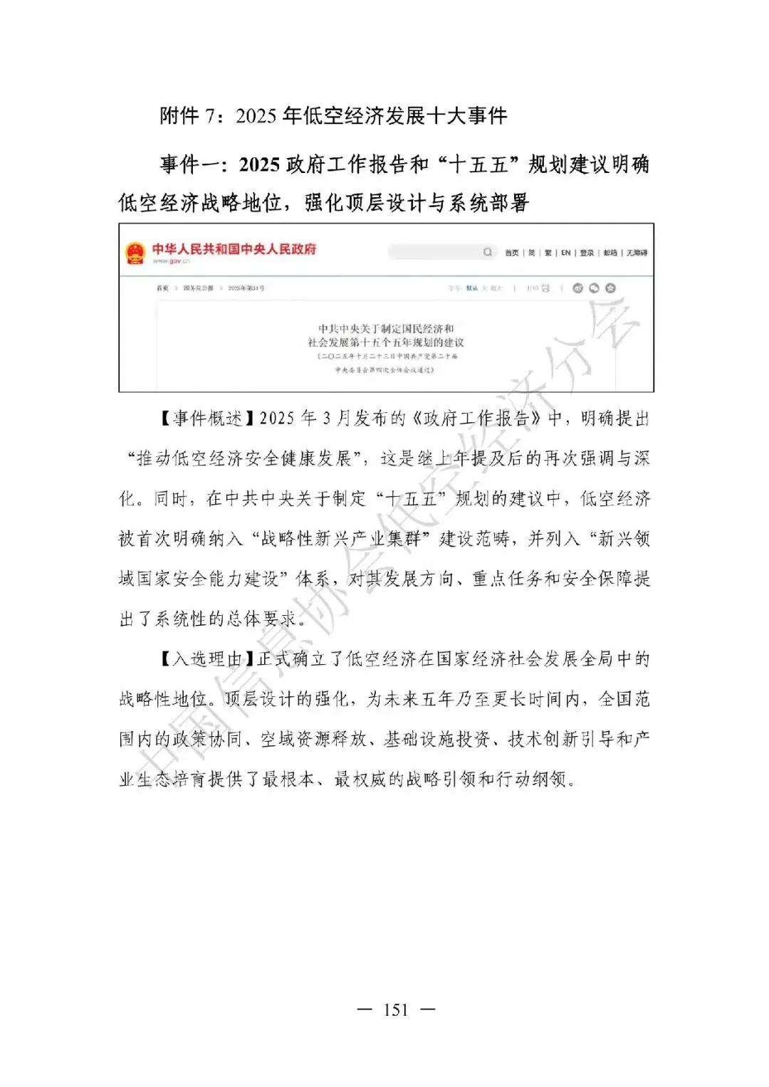 《报告》指出,2025年是我国低空经济发展历程中具有里程碑意义的“制度建设与体系构建发力年”。在党中央、国务院的高位部署和系统推进下,低空经济连续第二年写入《政府工作报告》,并首次纳入《中共中央关于制定国民经济和社会发展第十五个五年规划的建议》,战略定位得到进一步明确和提升。这一年,行业从前期概念热启与局部试点,全面转入制度构建、规则落地、能力夯实的新阶段。