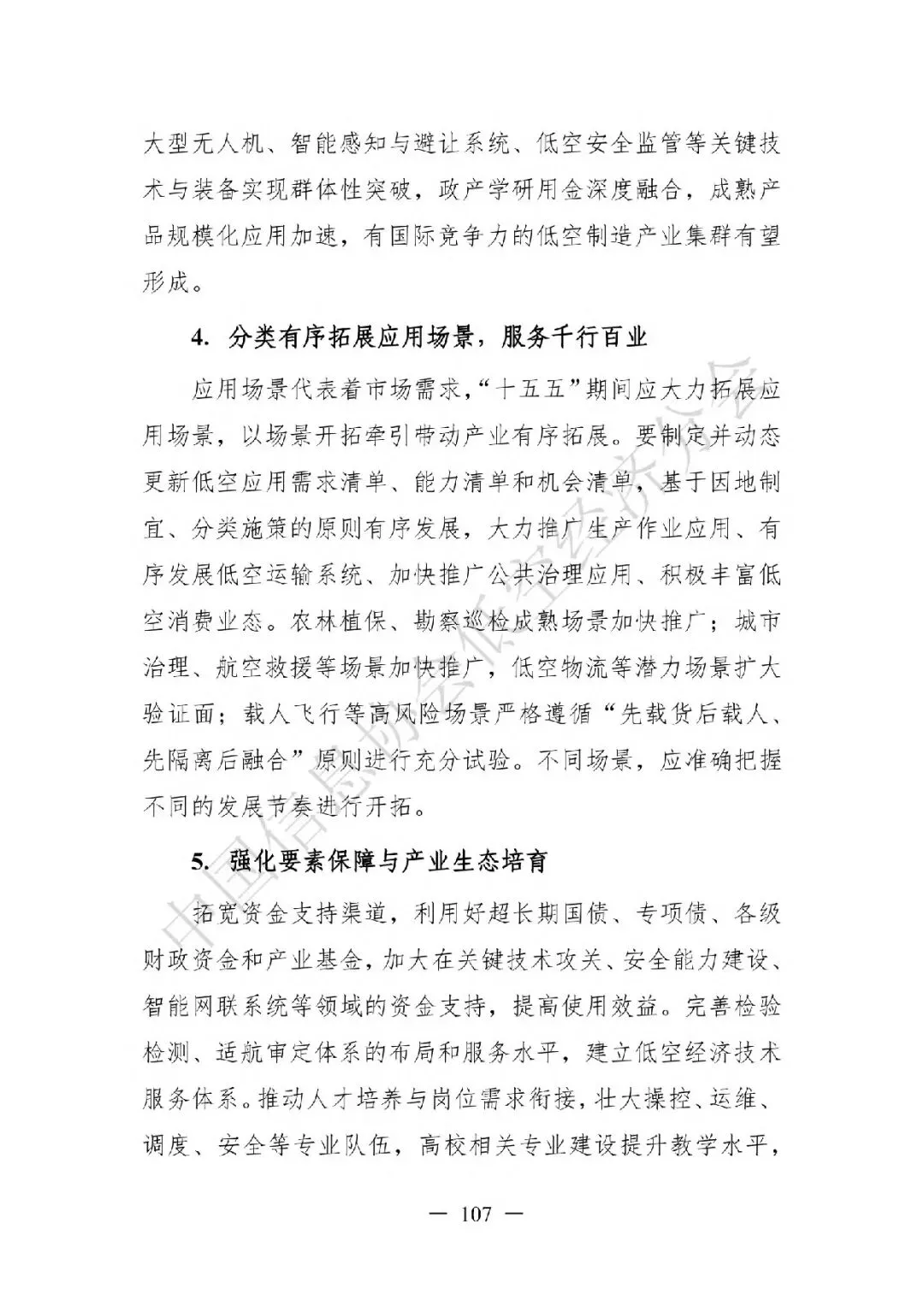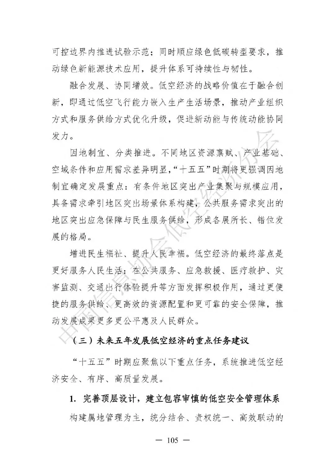 展望“十五五”,《报告》认为,低空经济被赋予打造新增长引擎和纳入总体国家安全观范畴的双重使命,将迎来安全体系健全、技术迭代加速、应用场景深化、基础设施网联、区域协同拓展的重大机遇期。