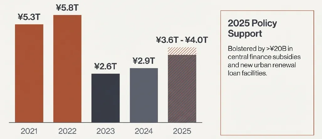 鉴于2024年约2.9万亿元的完成额以及2025年持续加码的政策支持(如中央财政补助超200亿元,城市更新再贷款工具推出等),2025年投资规模保持稳定增长是大概率事件。部分机构预测,2025年计划投资总规模可达3.6万亿至4万亿元人民币。