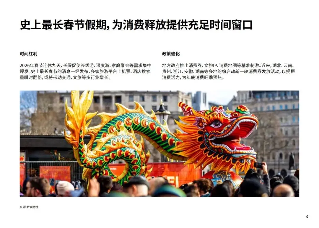 2026年春节即将迎来长达九天的史上最长假期。假期的延长不仅为个人休息以及家庭聚会提供了更为充裕的时间窗口,也让这一传统节日成为年度消费的重要爆发点。