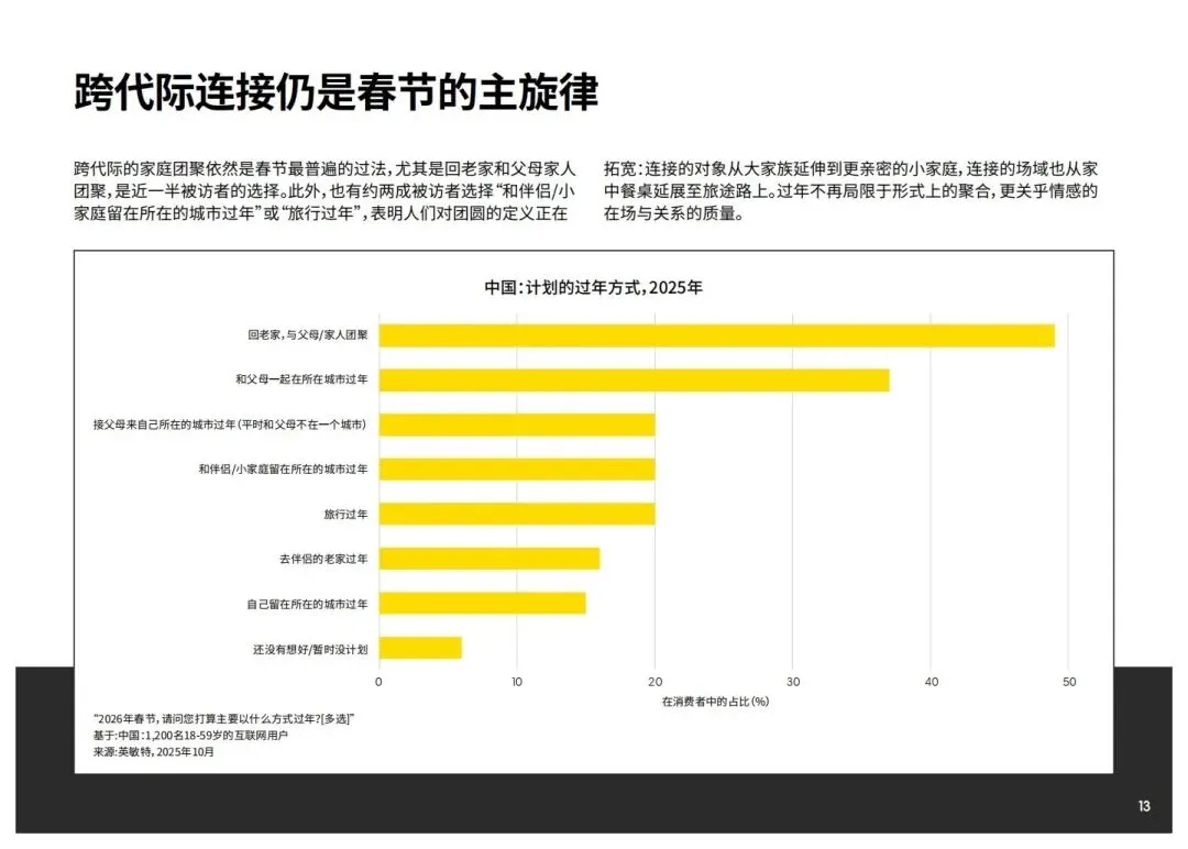 英敏特中国团队围绕春节消费开展前瞻调研,梳理出消费者的过年计划与重要机会场景,为品牌把握2026年春节商机提供参考。