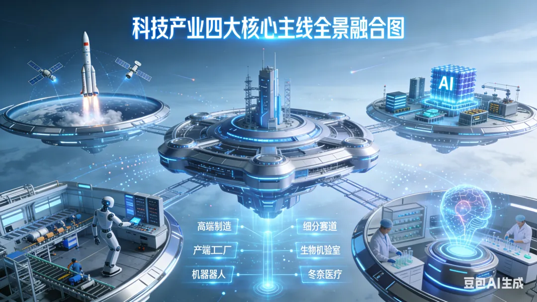 在我国经济从传统旧动能向新质生产力转型的关键阶段,资本市场迎来以科技产业为主导的产业牛市发展阶段,取代2014-2025年“互联网+并购”的产业发展与资本炒作逻辑,形成航天航空(商业航天)、AI算力+半导体、高端制造+物理智能、生物科技四大核心主线。本报告基于“结构化布局与产业化渗透估值匹配”的核心估值逻辑,将卫星互联网、HBM高带宽内存、液冷概念、人形机器人、低空经济、AI制药、减肥药等资本市场热门细分行业,精准融入四大核心主线的上中下游产业链体系,系统分析各主线的发展背景、核心驱动因素、完整产业链全景及高景气细分赛道机遇,深入剖析跨赛道融合的产业协同价值,客观探讨当前科技产业发展面临的技术、商业化、供应链等潜在风险,并对科技产业未来发展趋势与资本市场估值逻辑演进进行前瞻性展望。研究表明,本轮科技产业牛是国家战略导向、全球技术革命周期、国产替代刚需与资本市场资源配置共同作用的结果,四大核心主线产业链的深度融合与协同发展,是新质生产力落地的核心载体;而技术突破-产业化渗透-业绩兑现-估值匹配的闭环,是本轮产业牛市从资本题材炒作走向长期价值兑现的关键逻辑。