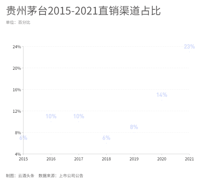 值得注意的是,2021年,贵州茅台直销渠道占比22.66%,而白酒行业普遍的直销占比不超过10%。由此,不难看出直销已经成为茅台的战略重心。