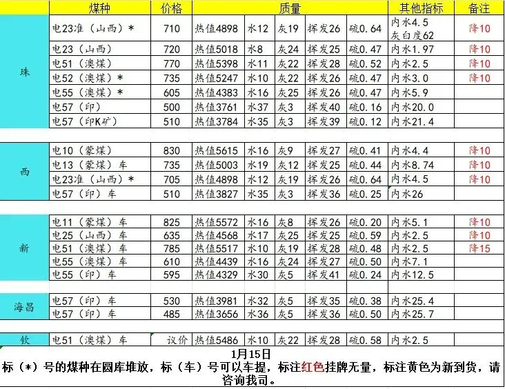 【神华高栏港竞拍以及珠电价格(2026年1月28日)】: