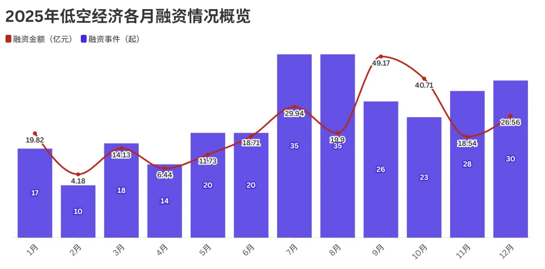这种月度波动既受节假日、资本投放周期等短期因素影响,更体现出低空经济在政策落地、技术突破、场景验证等长期驱动下的成长逻辑。随着下半年行业商业化场景加速落地,资本对低空经济的信心持续强化,也为2026年产业规模化增长奠定了坚实基础。