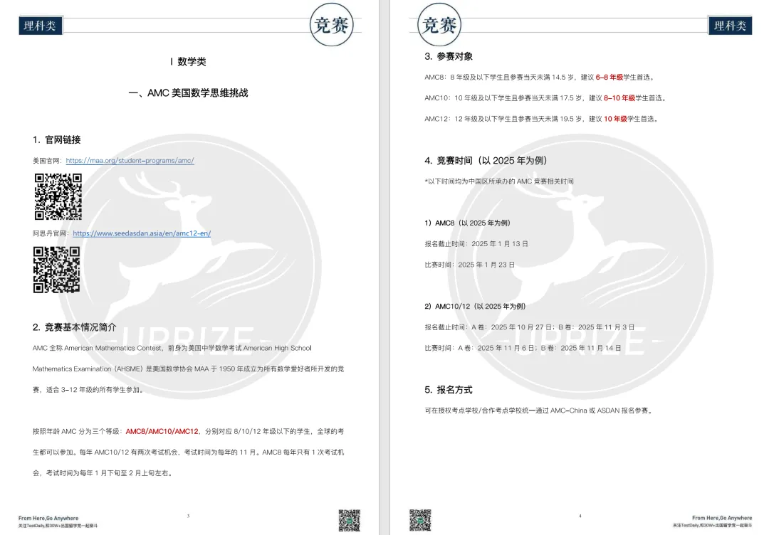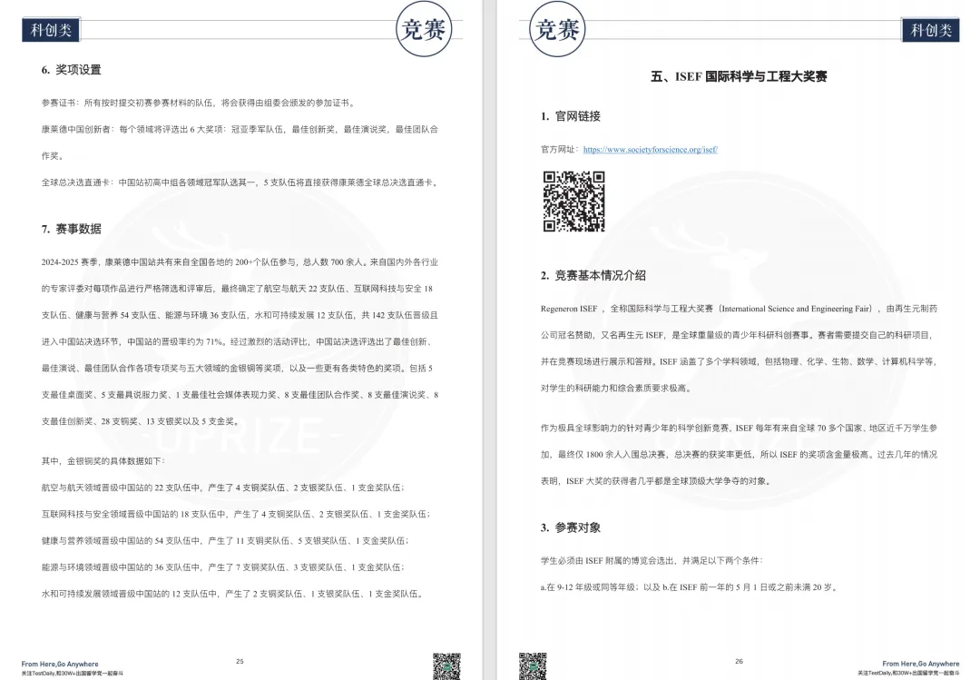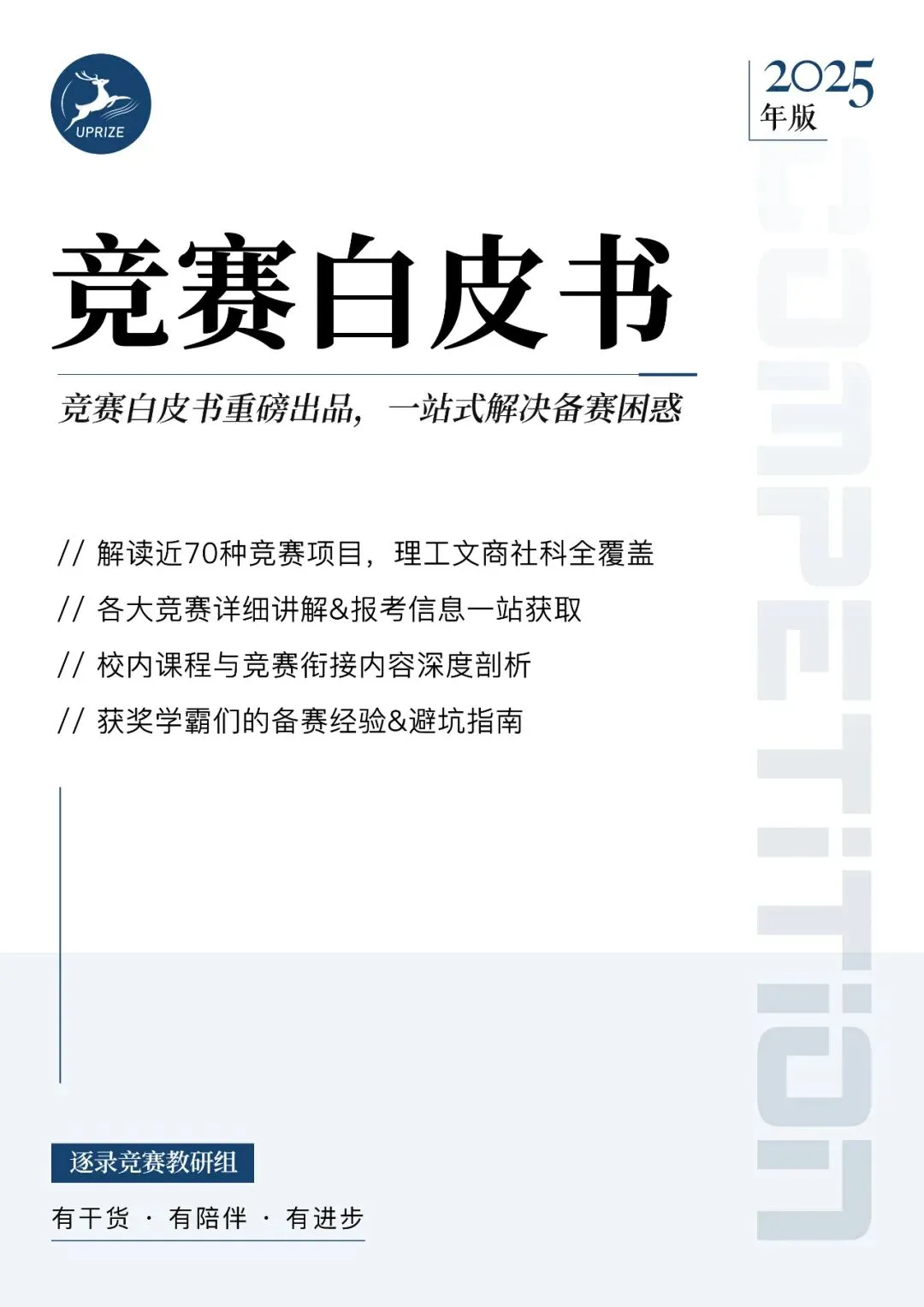 过去,我们将这两类赛事整合在一本《竞赛白皮书》中,力求全面覆盖学生的背景提升需求。但随着赛事体系的不断丰富与学生规划需求的日益精细化,我们意识到:合并呈现已无法满足学生对深度内容与精准路径的期待。因此,在2025年版中,我们正式将原《竞赛白皮书》拆分为: