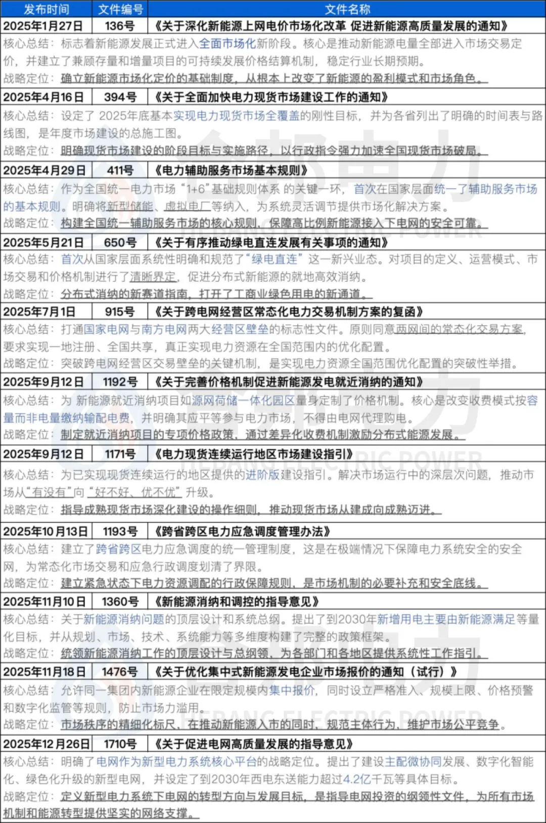 下半年,政策重点转向精细化设计与系统构建,密集出台了规范就近消纳价格1192号、引导现货市场深化1171号、建立应急调度保障1193号以及发布统领全局的新能源消纳顶层设计1360号等系列文件。