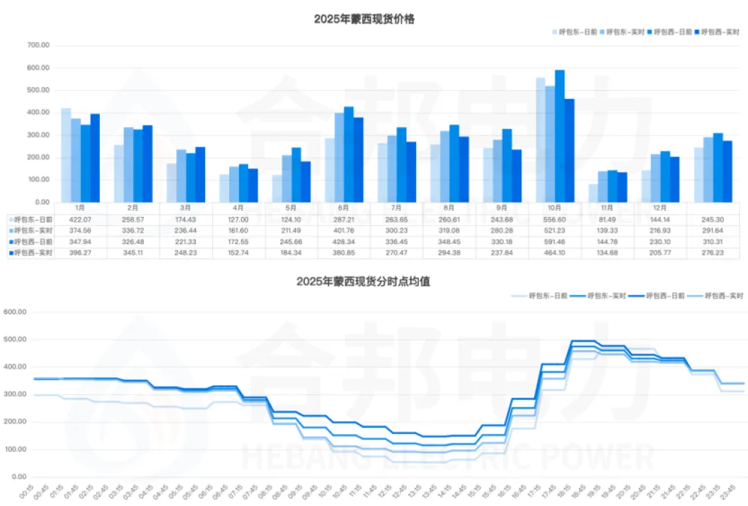 日前实时价差:与呼包东类似,日前价格略高于实时,价差模式相似。由于新能源预测偏差是共因,东西区价差幅度基本同步。