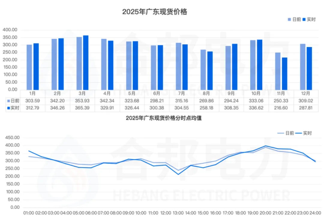 广东作为负荷大省,电价受季节与时段影响显著,市场成熟度高,日前与实时价格贴合较紧,整体电价水平较高,尤其在冬季1月、12月和夏季7月出现明显峰值,符合广东夏季降温与冬季采暖负荷叠加的特性。