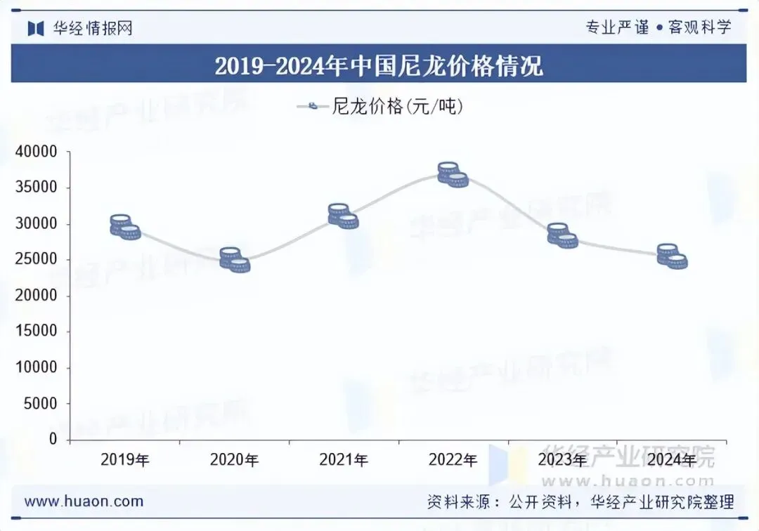 尼龙经过防泼水涂层处理,形成软壳衣裤的外层,承担防风、防泼水和耐磨的核心功能,其高强度特性使软壳衣裤能应对户外岩壁、树枝刮蹭等场景,双层尼龙编织更是可以通过空气层增强防风性,并保持轻量化。2024年,中国尼龙价格约为25361元/吨。