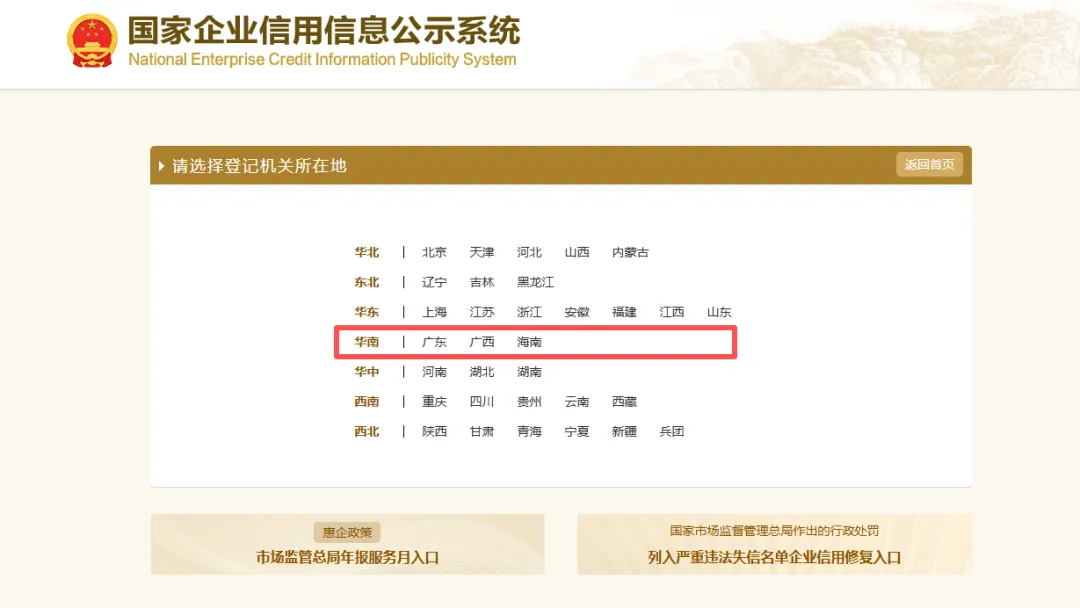 第一步:请输入网址https://www.gsxt.gov.cn/index.html,进入国家企业信用信息公示系统首页。