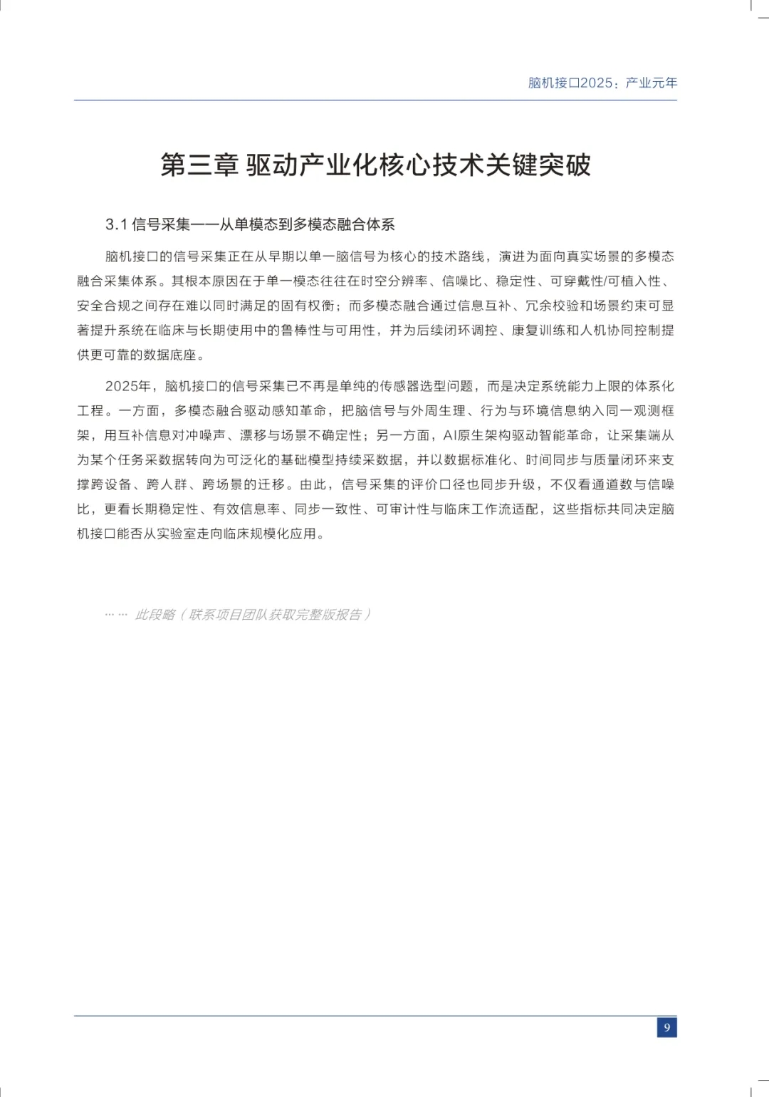 报告指出,脑机接口的长期趋势将从示范应用到标准与规模化。范式上从 “功能修复” 迈向 “脑机智能共同体” ,即人脑与智能系统形成持续交互、共同适应、共同学习的复合体,在安全与伦理边界内提供受约束的辅助决策与执行能力。同时,报告也指出产业发展需高度关注神经伦理新边界、神经数据主权与系统安全设计等挑战,并从国家统筹协同、证据生产闭环、核心部件国产化、支付与准入机制完善等多个维度提出系统性建议。