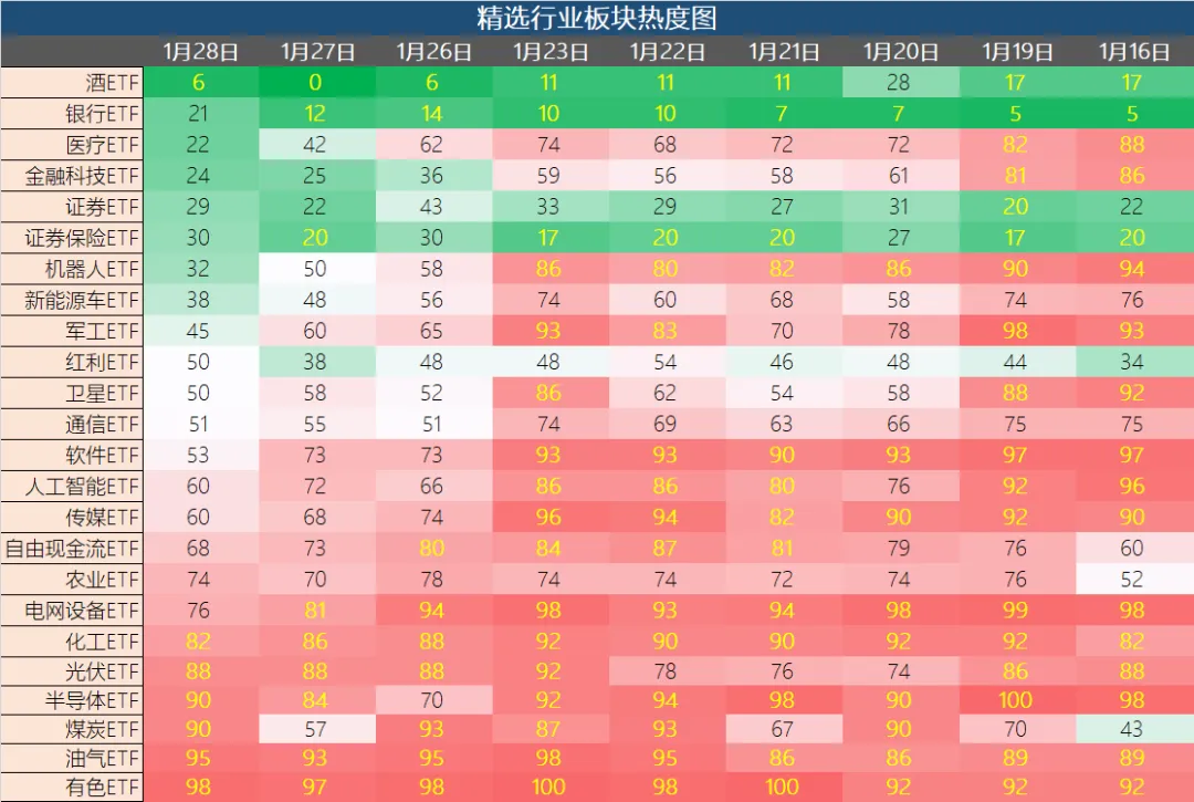 白线:上证指数|黄色:大盘情绪热度2️⃣ 细分市场热力图(结构观察)