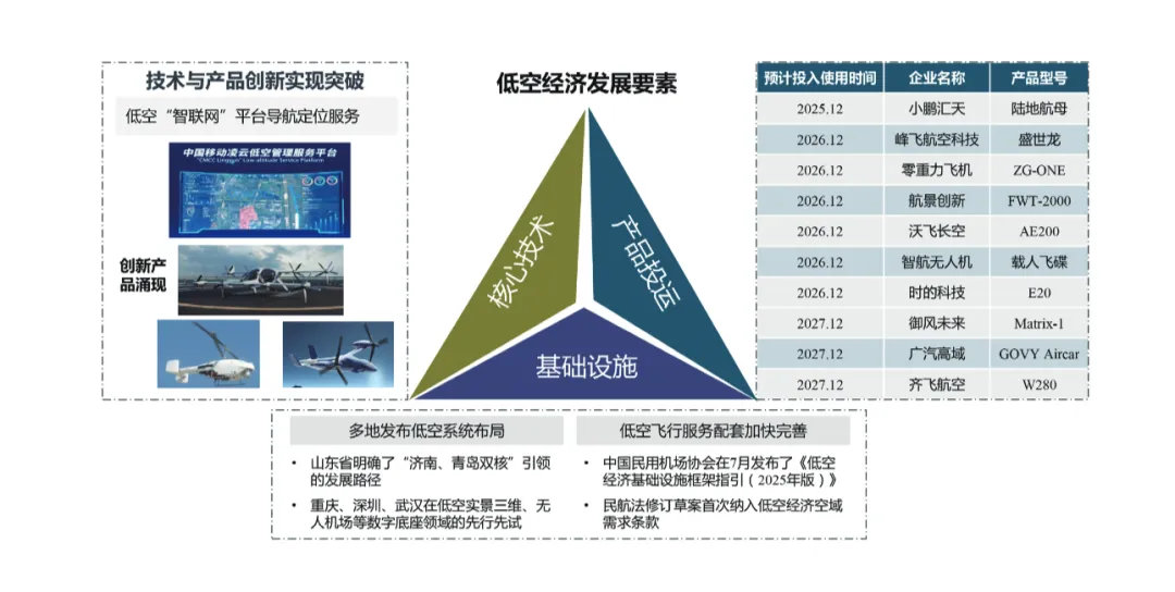 技术创新与支撑体系方面,建议加快核心技术联合攻关,重点突破高能量密度电池、高可靠性飞控、低空通信导航等关键技术。构建“政府引导—企业主导—用户参与”的场景孵化机制,在高价值场景开展规模化验证。