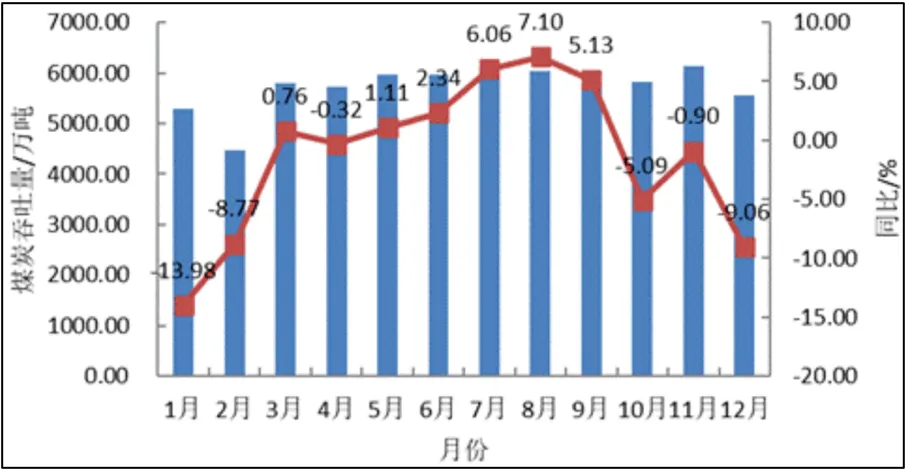 图1:我国近年煤炭分月产量走势