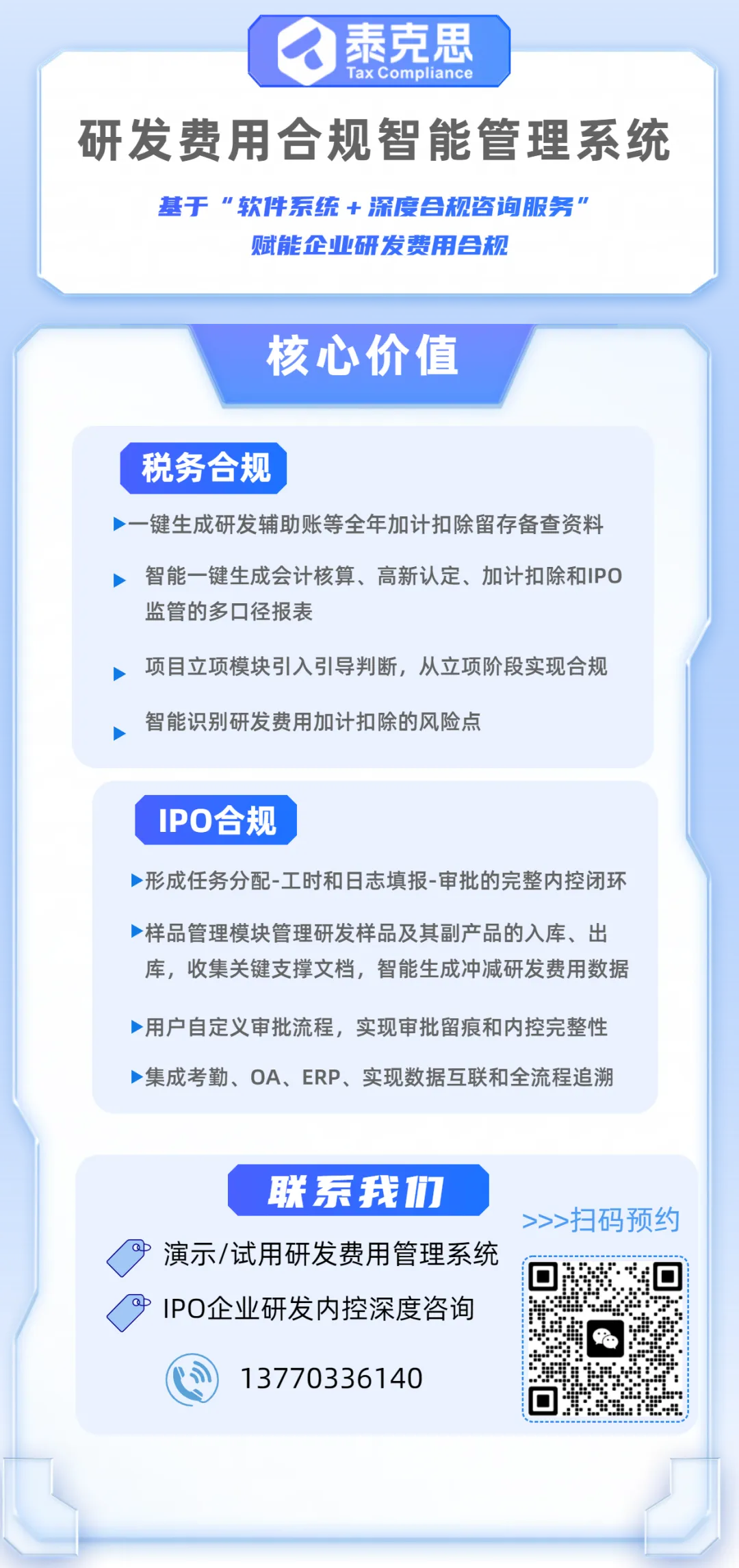 泰克思(南京)信息科技有限公司成立于2019年,自主研发了《研发费用合规智能管理系统》,长期植根于泛财税咨询服务领域,在研发费用合规管理方面有深厚的理论研究和实践案例积累。是业内首家提出“IPO研发深度咨询+研发税务合规咨询+研发管理系统“整体解决方案的服务商。