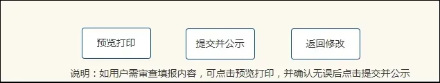 ☞填写完成后点击“提交并公示”,完成年报公示。年报提交并公示后,系统进入年度报告管理页面。通过年报状态查询年报完成情况。已公示:表示完成年报;未公示的需点击【修改】再次进入“预览并公示”板块,选择提交并公示,直至年报状态为“已公示”。