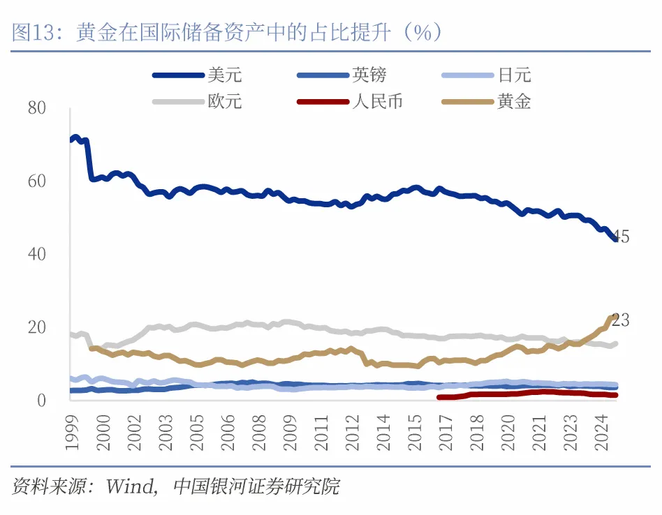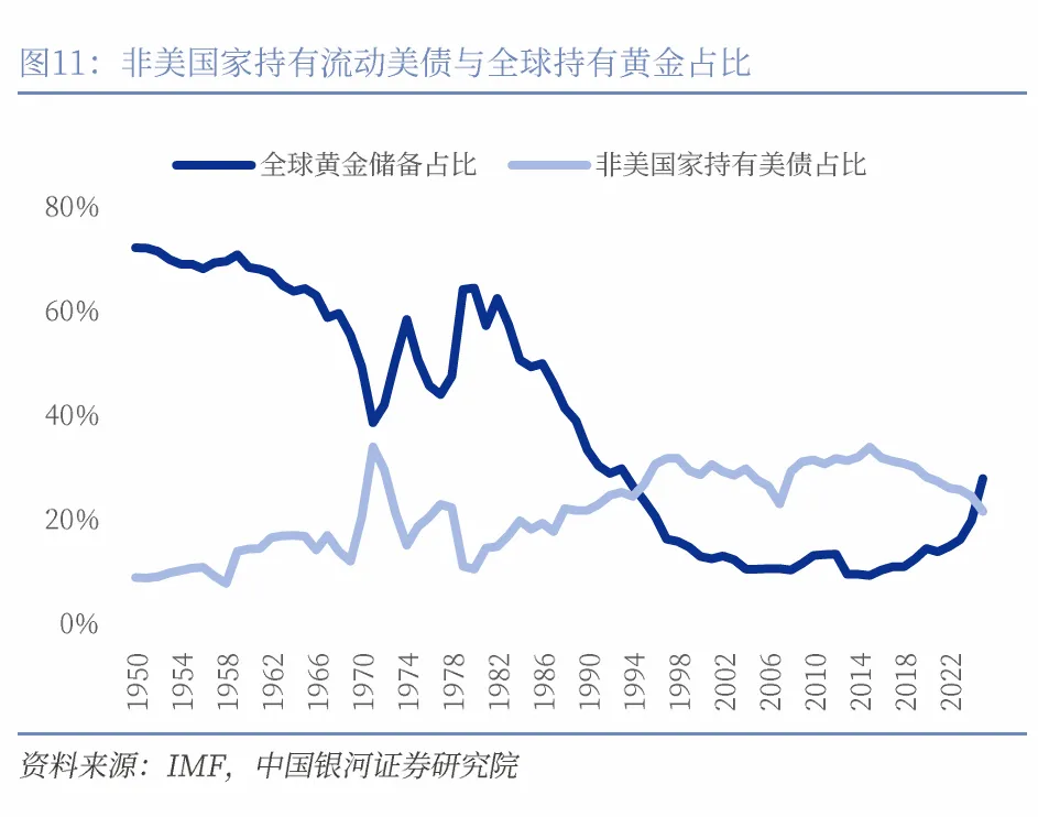 全球外汇储备结构正在发生深刻的调整。2020年以来,全球部分央行正逐步降低对美元资产的过度依赖,转而通过提高黄金及其他货币资产的配置比例,对冲全球不确定性带来的风险。截至2026年1月,全球黄金储备的市值规模已超过非美经济体所持有的美国国债储备规模。从2020年至2025年11月末,一方面,巴西与俄罗斯分别减持1137亿美元和99亿美元的美债。另一方面,波兰、印度与土耳其分别增持287吨、262吨和243吨黄金,巴西、俄罗斯、泰国、新加坡和日本增持黄金的规模均超过70吨。