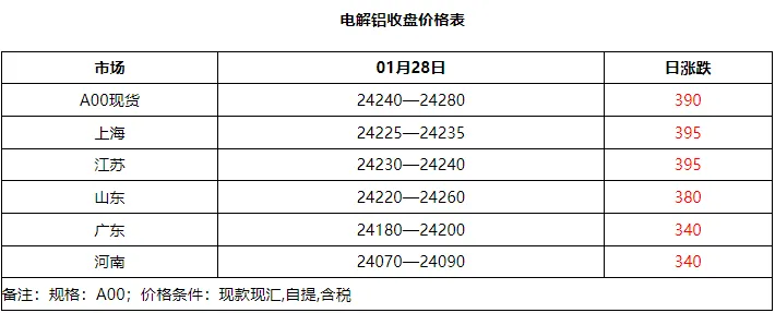 上海市场:上海地区现货市场铝锭主流价格在24225-24235元/吨,较上一个交易日涨395元/吨。今日市场交易表现平平,铝价宽幅拉涨,持货商出货为主,贸易商接货提升但基差走阔,下游刚需接货,交投气氛淡稳。截至信息发布,所采样本均符合方法论采纳原则,无剔除。