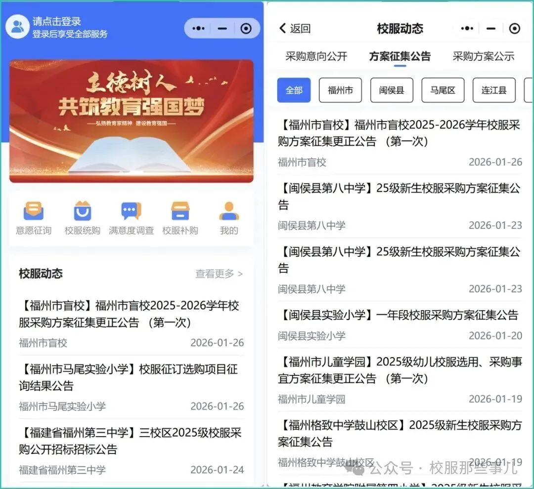 备受社会广泛关注的“全市统一校服”这一热点议题,不仅关乎青少年精神风貌的塑造与新时代校园文化的深度涵育,更紧密牵涉校服的设计研发、精细生产、严格质控、规范流通及长效监管等全链条环节。在此过程中,教育主管部门、中小学校、广大学生家长以及校服生产企业等多元主体立场各异、诉求多元、观点纷呈;与此同时,全国各城市在政策设计、推进路径、执行标准及协同机制等方面亦呈现出鲜明的区域特色与差异化实践。福州市立足治理现代化理念,创新推动制度刚性约束与数字技术赋能深度融合,率先建成全省首个覆盖“需求征集—方案制定—公开采购—履约监管—质量追溯—家校反馈”全生命周期的校服采购全流程闭环治理体系。依托智能化数字应用平台,系统实时归集、动态更新并集中公示采购意向、遴选方案、项目公告、中标结果、合同文本及履约评价等关键信息,全面打破信息孤岛,显著提升透明度与公信力,切实营造公平、公正、阳光、可溯的校服市场环境。