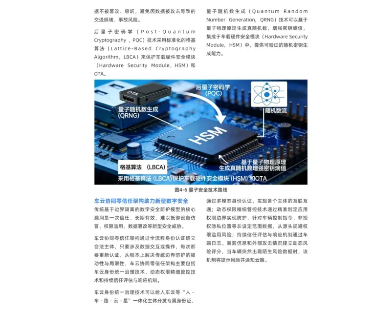 未来量子技术将基于物理规律构建无法破译的核心防线;车云协同零信任架构通过持续验证确保交互安全;AI驱动的自学习防御体系则能实时感知风险、预测攻击并动态调整策略,实现智能汽车的主动防护。