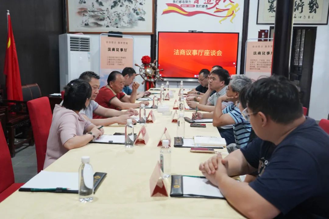 出席座谈会的有,苏州市安徽商会值班会长(副会长)骆信国,咨询委员会主任张怀玉,秘书长王凤巧,会员郭平;姑苏区虎丘司法所所长张宁,苏州大学法学院教授许小亮,协力律所姜泽峰以及虎丘司法所相关同志。会议上,双方代表就法商议事厅议事规则、维护企业合法权益等议题进行了深入交流。