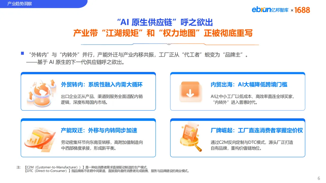 2. 数贸创新,AI重构跨境生态跨境生意正在被AI重构,B2B平台成为关键引擎。"柔性出海"成为关键词——理性看待产能外迁,AI时代的数字供应链没有边界。