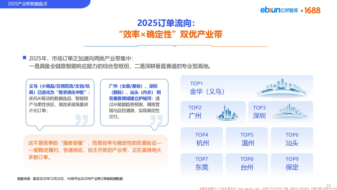 2025年的产业带版图正在经历"大洗牌"。报告数据显示,市场订单加速向具备"全链路智能响应能力"的综合型枢纽和"深耕垂直赛道"的专业型高地集中。