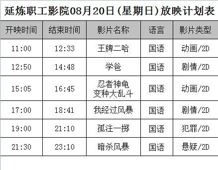 2、本影院属延炼职工影院,观影享受职工福利,所有票价一律23元/场次,3岁以下儿童免费观影,须有大人陪同;