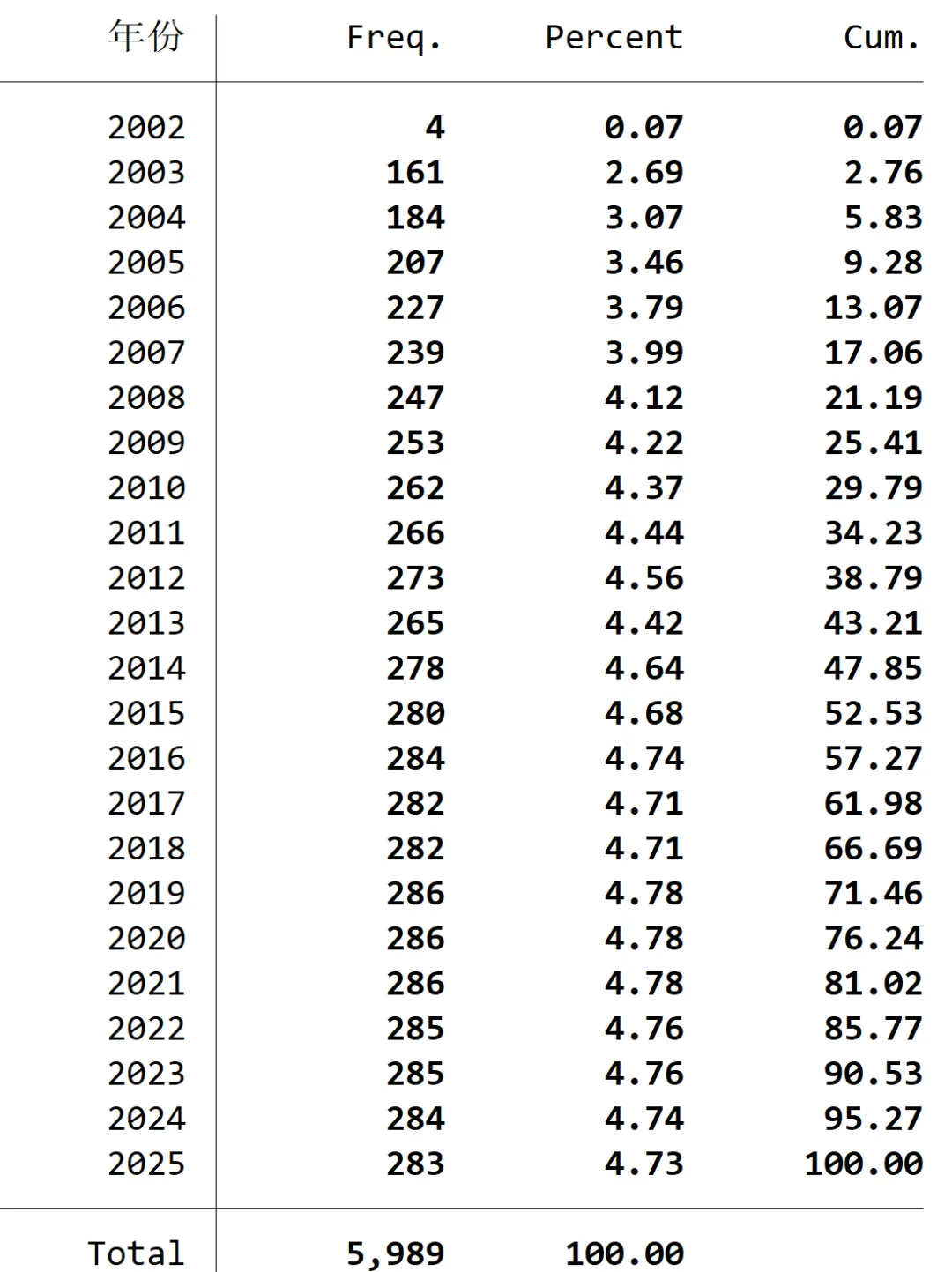 时间范围:2002-2025年