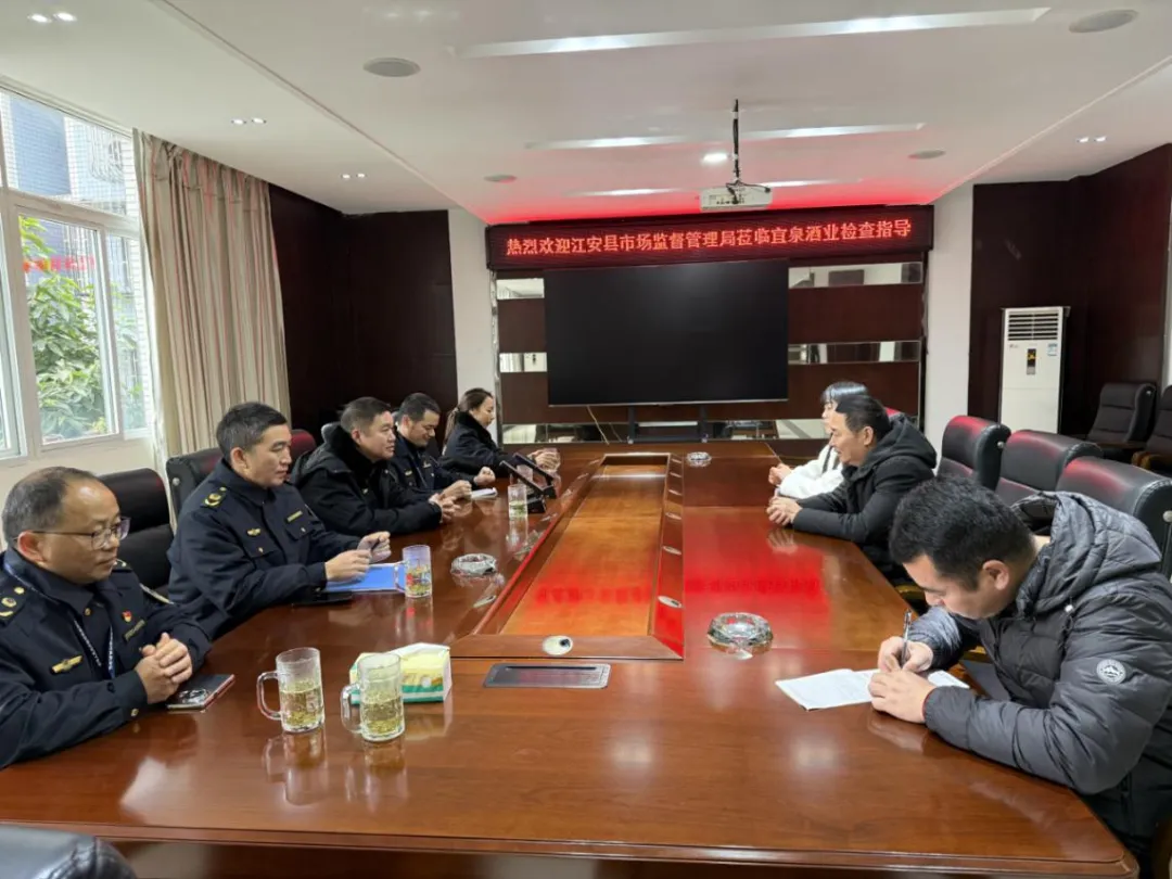 民以食为天,食以安为先。岁末年初是食品消费的集中时段,也是食品安全风险防控的关键期。为切实保障群众饮食安全,营造安全有序的节日市场环境,2026年1月28日,江安县市场监管局党组书记、局长成东带队赴四面山片区,深入四川宜宾宜泉酒业有限公司、四川龙洋食品有限公司和江安县尚品餐饮服务有限公司等重点食品生产经营企业,实地调研食品安全,全面排查风险隐患。