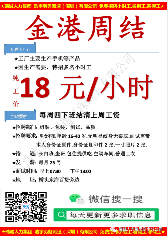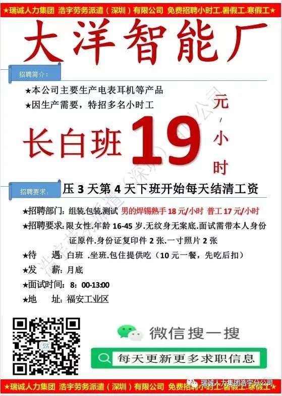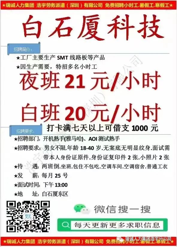 【08月21日 星期一面试的企业】名企招聘,日结,周结,高工价,长白班 ,做事轻松,包吃住任你选,快来报名吧!!!