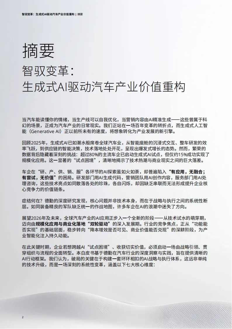 【全球行业报告库】2026智驭变革:生成式AI驱动汽车产业价值重构白皮书(附下载)