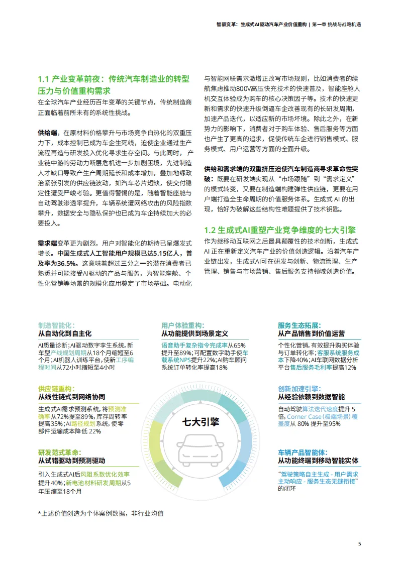 《智驭变革:生成式AI驱动汽车产业价值重构》白皮书指出,生成式AI正推动汽车产业迎来百年未有的变革,从技术试点逐步迈向规模化应用与商业化落地的新阶段。