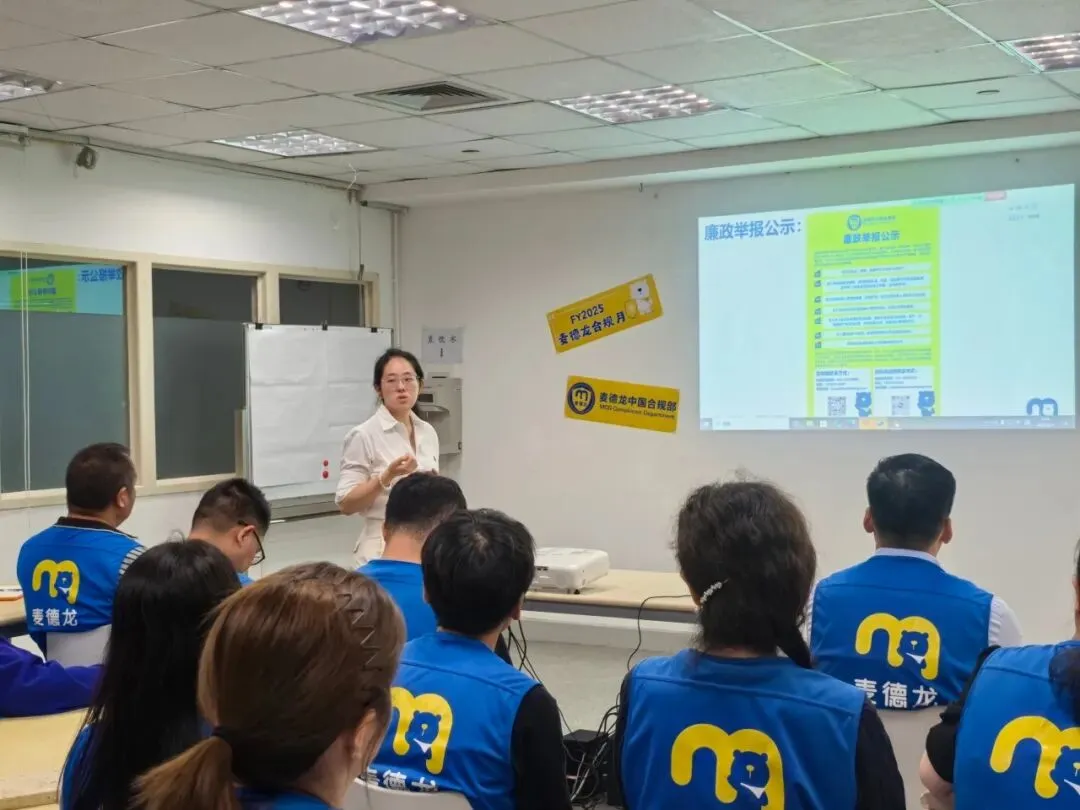 本年度合规部在长沙开福、沈阳浑南、深圳宝安、台州椒江及昆明北辰五家店及其所在的五个区域,通过线上及线下同步方式开展了5场面对面培训,共计约有600多位员工线下参与到2025年度合规月培训活动中。2025年度合规月培训活动也同步邀请到总部防损风控部作为联席讲师,向各区域及门店同事分享了与日常运营息息相关的多项内容及风险防控措施,充分将诚信道德、风险管理、往期案例相结合,有效帮助员工对在日常工作中可能遇到的潜在风险、如何诚信履职、秉承诚信合规要求、遵守廉洁自律义务等多方位信息构建全面认知,有效促进麦德龙风险防控管理建设,持续推动麦德龙诚信合规文化的可持续发展。