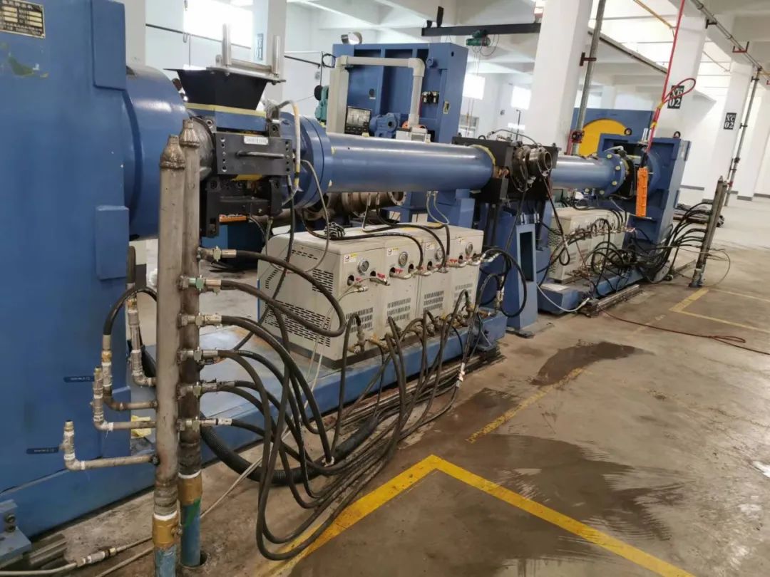 北创公司橡缆车间的150连续硫化挤出机生产线,配套的模温机在工作时温度可达90—100度,在设备检修过程中发现挤出机连接温控装置的冷却循环管路漏液老化、缺失严重,极易发生触电和烧毁机器的现象。
