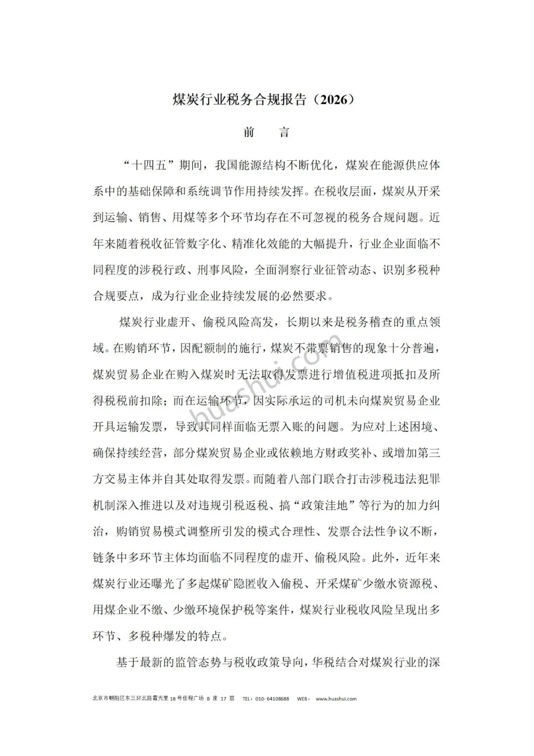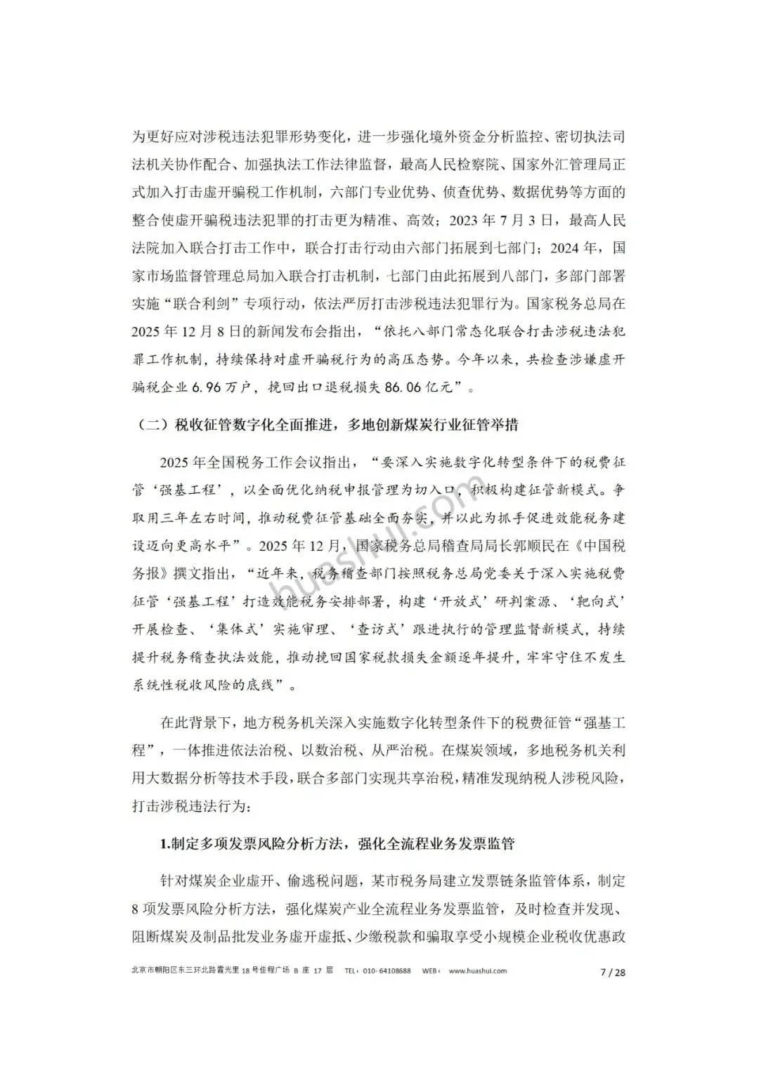 “十四五”期间,我国能源结构不断优化,煤炭在能源供应体系中的基础保障和系统调节作用持续发挥。在税收层面,煤炭从开采到运输、销售、用煤等多个环节均存在不可忽视的税务合规问题。近年来随着税收征管数字化、精准化效能的大幅提升,行业企业面临不同程度的涉税行政、刑事风险,全面洞察行业征管动态、识别多税种合规要点,成为行业企业持续发展的必然要求。