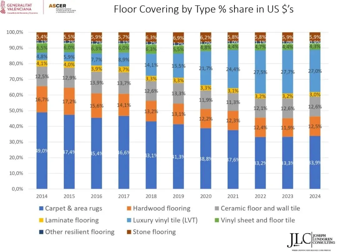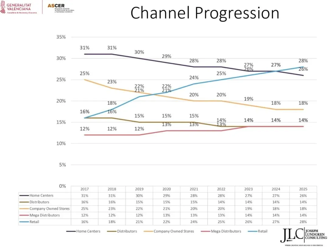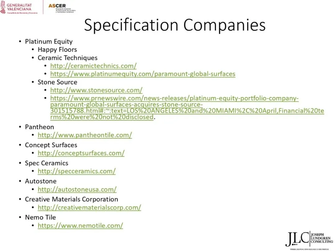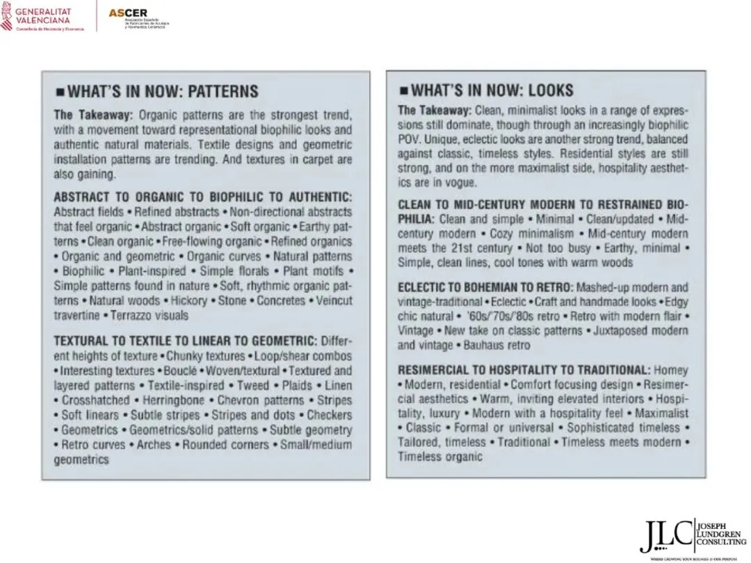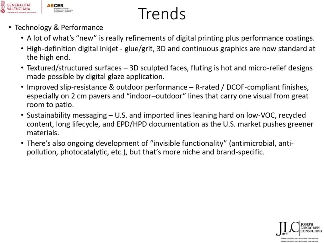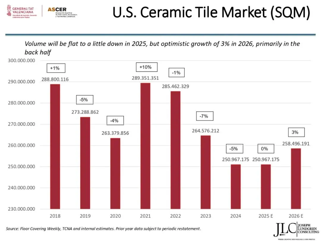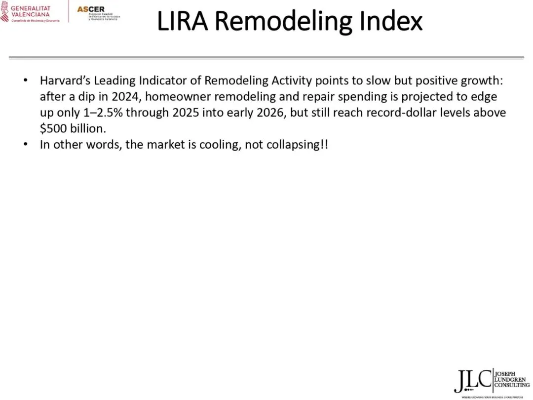 ASCER近期举办了一场网络研讨会,介绍了JLC咨询公司根据与瓦伦西亚自治区政府经济、财政和公共管理部合作协议开展的美国市场调研结果。约30名与会者参加了此次研讨会。会上,咨询顾问乔·伦德格伦对报告进行了详细分析,内容涵盖了从美国宏观经济指标到建筑业发展、瓷砖和地板市场现状,以及主要分销渠道、竞争材料和新兴趋势等各个方面。