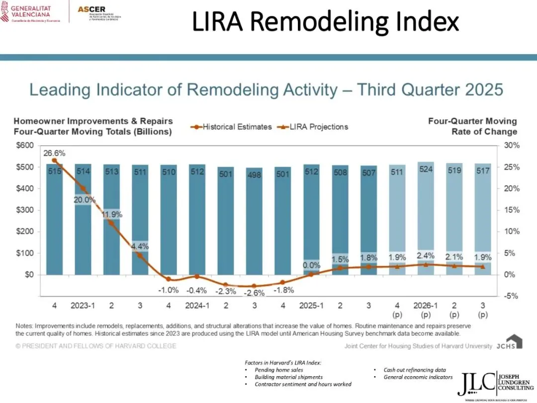根据该研究,预计2025年,市场价值将略有增长(+2%),而销量将保持稳定。到2026年,预计市场价值和销量都将增长3%,这主要得益于住宅领域的翻新改造。