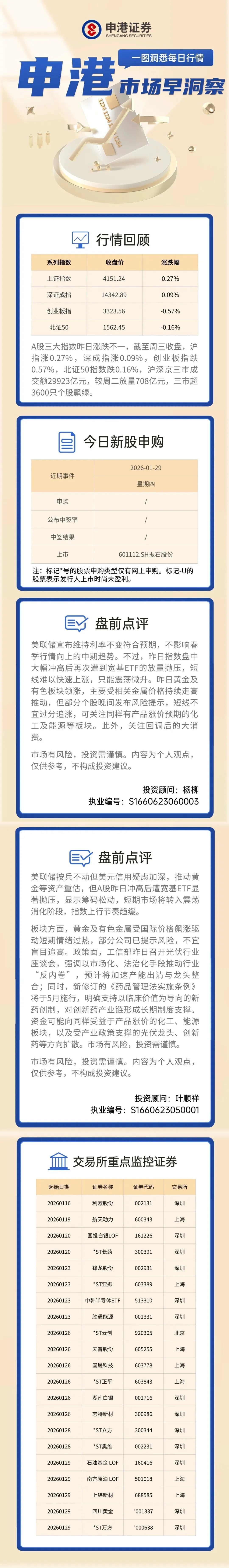 申港市场洞察 I 1月29日盘前指南