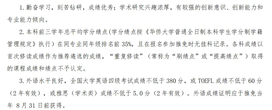 ? 华侨大学2026保研政策,申请要求