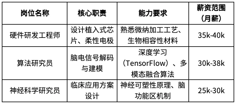 据《科技日报》数据,2030 年我国脑机接口专业人才需求将超 20 万人,但目前全国仅天津大学开设本科专业,年培养规模不足百人。企业招聘中,硬件研发、算法解码等核心岗位平均空窗期达 3 个月,高端人才(如神经解码算法专家)年薪已突破百万。