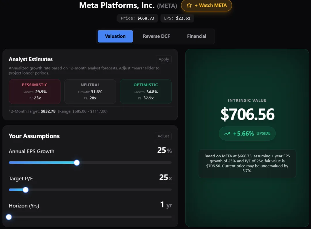 我们采用简化的 PEG 修正模型,基于财报数据的内在价值评估: