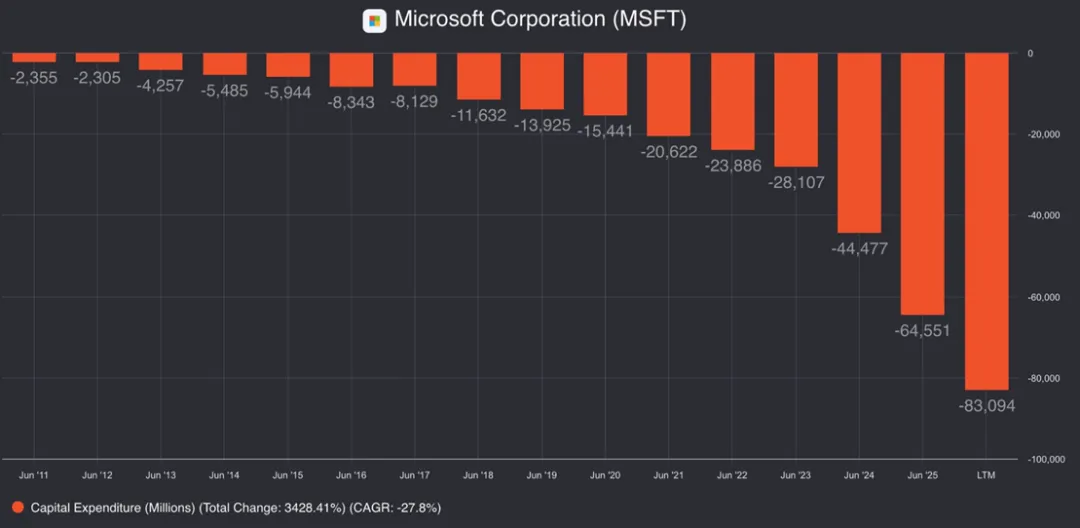 lCapEx豪赌升级:这个数字也震撼了市场。Q2资本开支冲到了375亿美元,是Q1的近两倍。CFO Amy Hood解释说,375亿开支中约2/3用于GPU和CPU等“短周期资产”。这意味着一旦需求变动,微软可以迅速调整采购节奏,而非像其他重资产一样被长期套住。