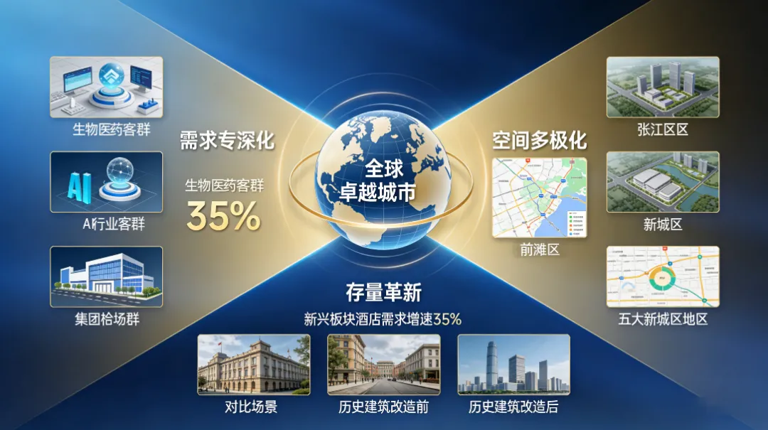 上海,作为中国链接全球的战略枢纽与最具代表性的卓越城市,其酒店市场正步入一个从规模化扩张向结构性优化、从宏观景气依赖向微观运营制胜的关键转型期。在“中心辐射、两翼齐飞、新城发力、南北转型”的城市空间新格局下,传统以人民广场-外滩-陆家嘴为核心的“单中心”价值体系正加速裂变。本报告认为,未来两年投资上海酒店市场的核心逻辑,在于超越对复苏周期的简单期待,转而聚焦 “城市更新中的场景再造、新兴增长极的确定性填补、以及存量市场的效率与体验革命” ,在复杂多元的市场光谱中,精准识别并锚定那些能够穿越周期、构建长期护城河的稀缺性机遇。
