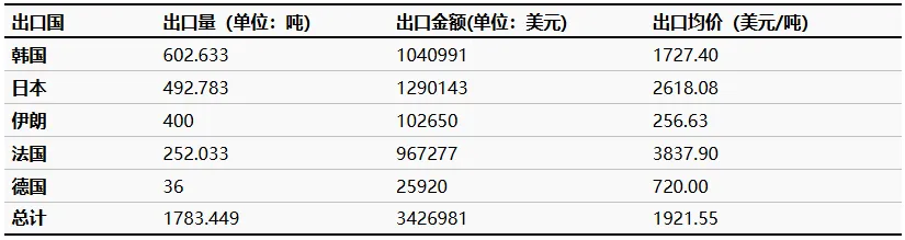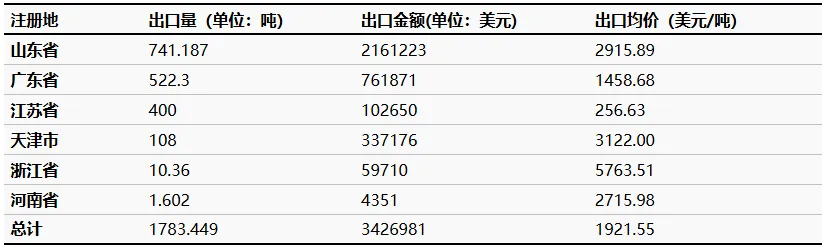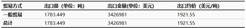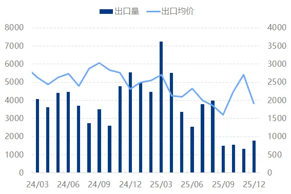 2025年1-12月累计出口量为42068吨,较去年同期增加89吨,增幅为0.21%。