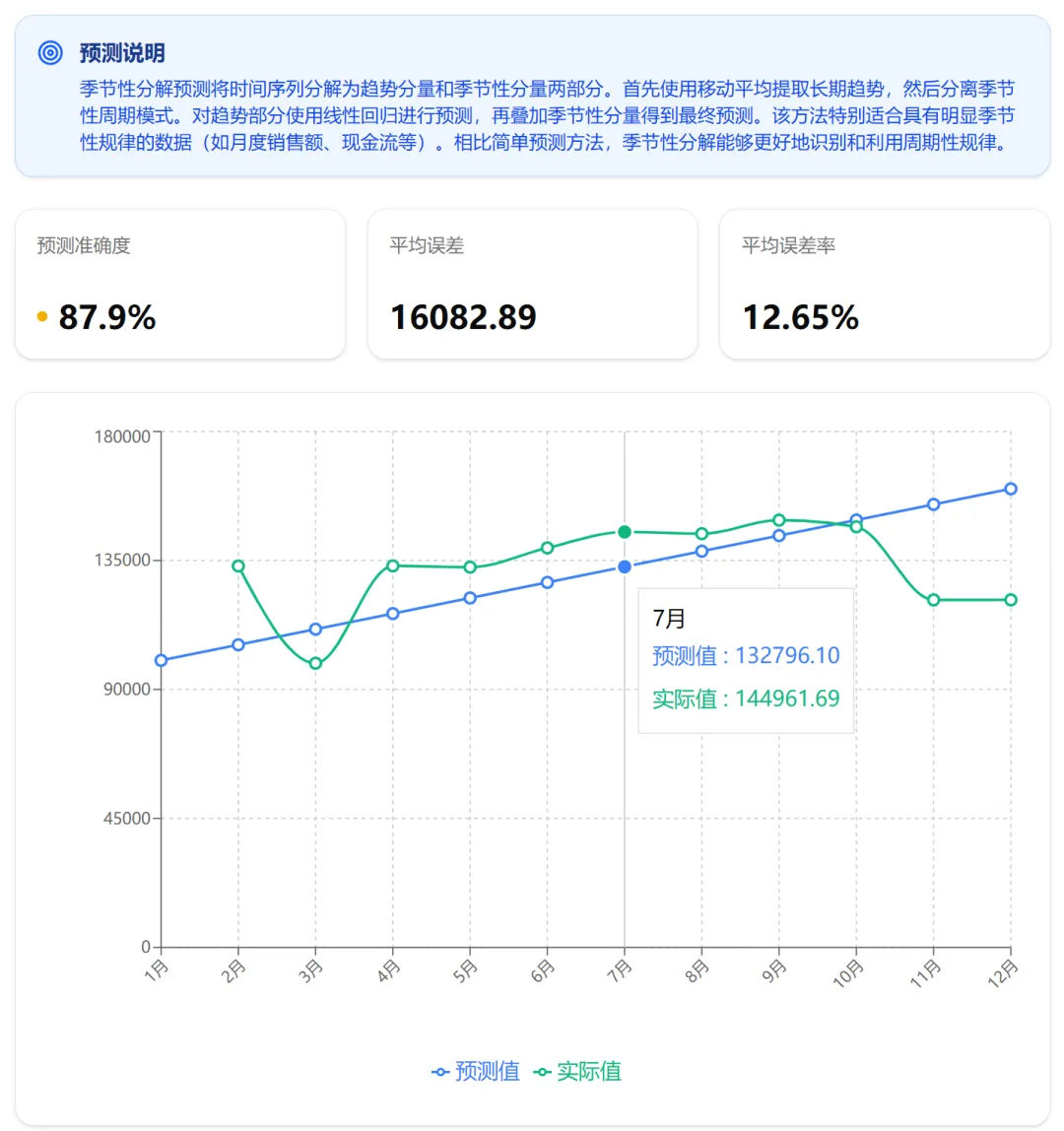 采用“传统方法融合”模式,如“线性回归+季节分解”“指数平滑+自适应移动平均”,结合Python编程实现自动化计算,提升预测精准度;若新兴业务占比高,可引入SVR支持向量回归(样本量少、非线性适配)。