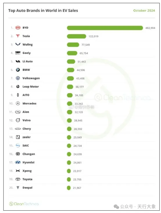 全球新能源品牌销量Top20榜单显示,中国品牌占据13席,展现出强劲的全球竞争力。其中,比亚迪以48.3万辆销量高居榜首,市场份额达27.7%,远超第二名至第九名销量总和;特斯拉以12.2万辆销量位居第二。中国品牌五菱、吉利、理想表现突出,分别位列第三、第四、第五名。海外品牌中,德系大众、宝马、奔驰占据3席,韩系、欧系、日系、美系品牌各占1席,全球新能源市场多元化竞争格局已然形成。