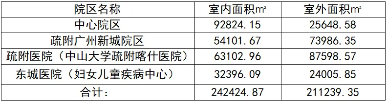 ①喀什地区第一人民医院中心院区、②疏附广州新城院区、③疏附医院(中山大学疏附喀什医院)、④东城医院(妇女儿童疾病中心)室内室外保洁服务、生活垃圾及医疗废物垃圾收集清运服务、绿化带基础养护服务、灭四害消杀服务。