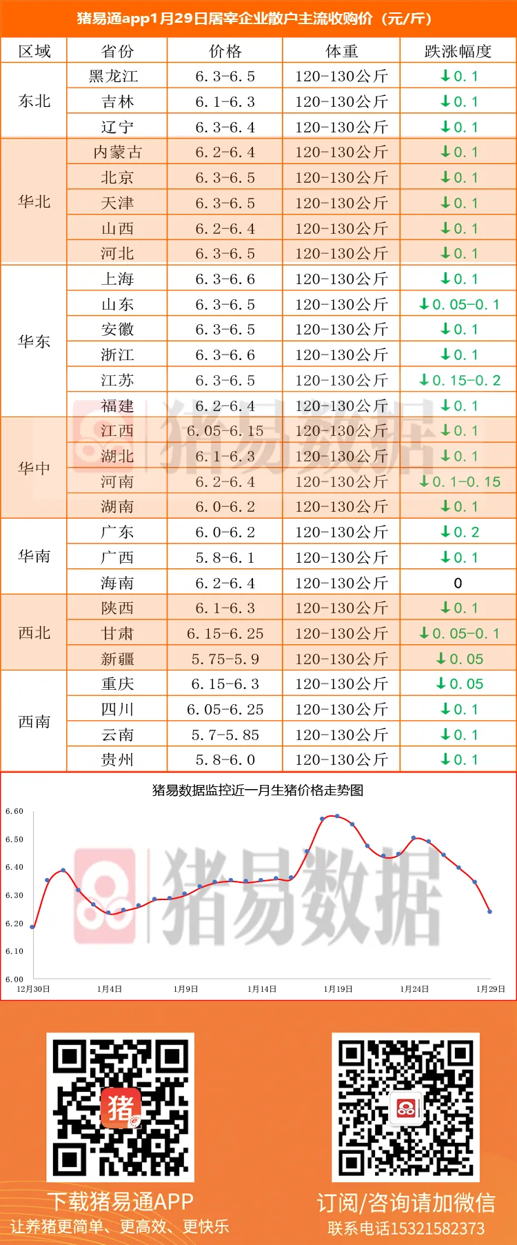 整体来看,全国生猪价格呈现大部下跌态势。今日集团猪场生猪成交价格呈现大部下跌,东北、华北、华东、西南、华南地区集团猪场猪价呈现大部下跌态势,西北、华中地区集团猪场猪价呈现跌涨调整态势。华东、华中地区龙头集团110-125公斤生猪价下跌0.2-0.4元/公斤,125-140公斤生猪价格稳中伴跌0.05元/公斤,龙头集团猪价呈现大部下跌,陕西地区部分体重段生猪价格小幅上涨。从养殖集团生猪上市量来看,西南、华东集团生猪上市量有所减少,华中、西北集团生猪上市量有所增加。从昨晚北京、上海消费城市批发市场白条价格走势来看,批发市场白条价格呈现跌涨调整,市场成交情况表现偏差,市场走货速度表现一般偏差。昨晚东北地区屠宰企业白条猪出场价格稳中伴跌200元/吨,山东地区昨晚屠宰企业白条猪出场价格下跌100-300元/吨,河南地区昨晚屠宰企业白条出场价格下跌100-300元/吨,昨晚屠宰企业订单情况表现稳定。从屠宰企业生猪采购难度来看,东北地区屠宰企业生猪采购难度表现减弱,养殖户出栏积极性有所增加,集团猪场猪价呈现稳中伴跌态势,临近中午,屠宰企业停计划现象表现一般。中部、东部地区屠宰企业采购难度表现一般,当地养殖户出栏积极性有所增加,南方部分地区生猪有调入现象,集团猪场销售速度表现一般偏差,临近中午,屠宰企业停计划现象表现偏好。南方地区屠宰企业采购难度表现偏弱,屠宰企业停计划现象表现一般,西南、华南集团猪场接货完成度表现偏差,集团场猪价呈现稳中伴跌态势。从市场表现情绪来看,看稳、看跌情绪并存,猪易预计明日猪价稳中偏弱,重点关注养殖场户上市节奏变化。